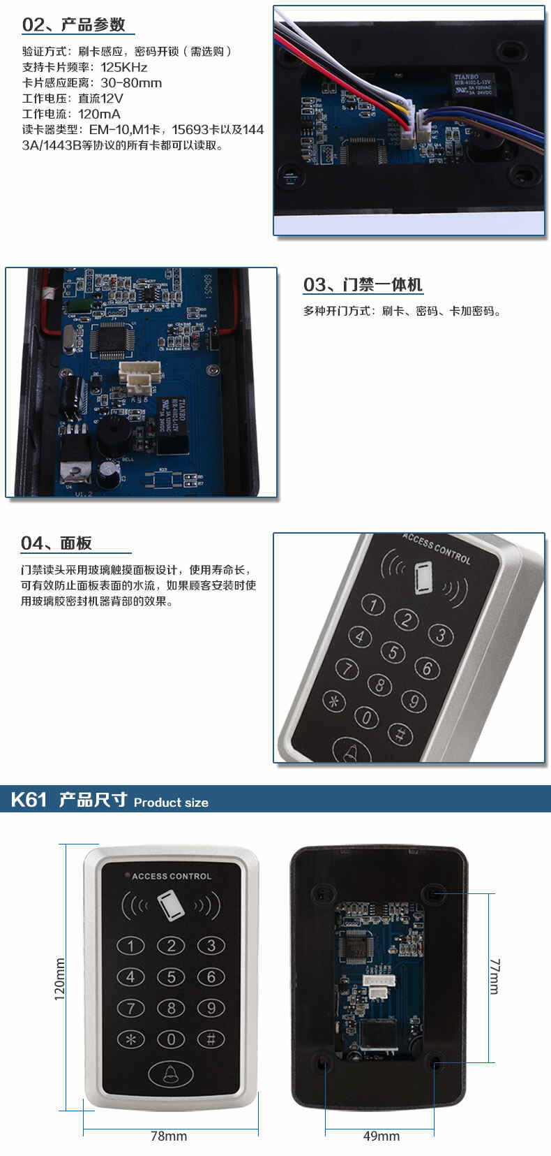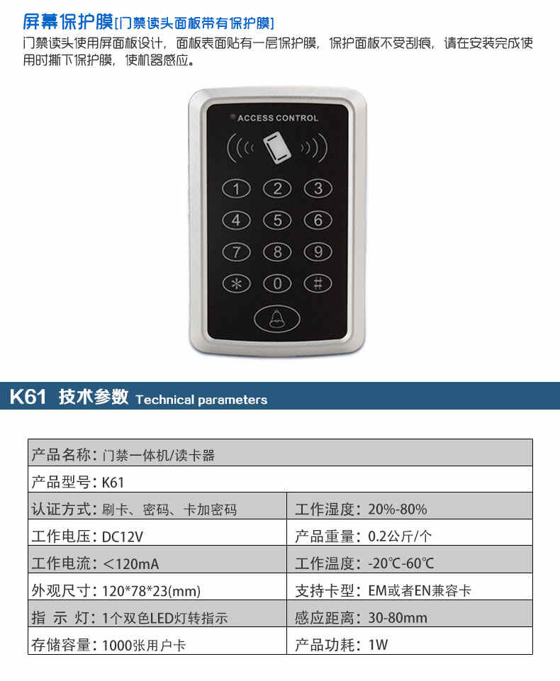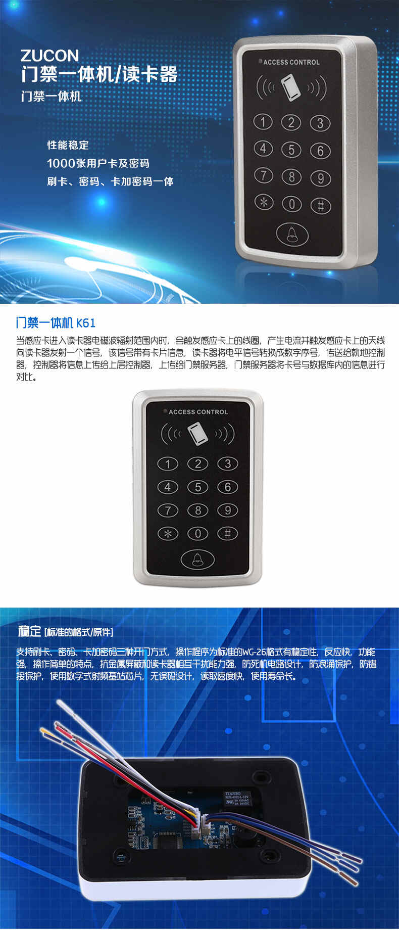 ZUCON祖程K61密碼刷卡門禁一體機 ID刷卡一體機 門禁系統(tǒng)通用讀卡器