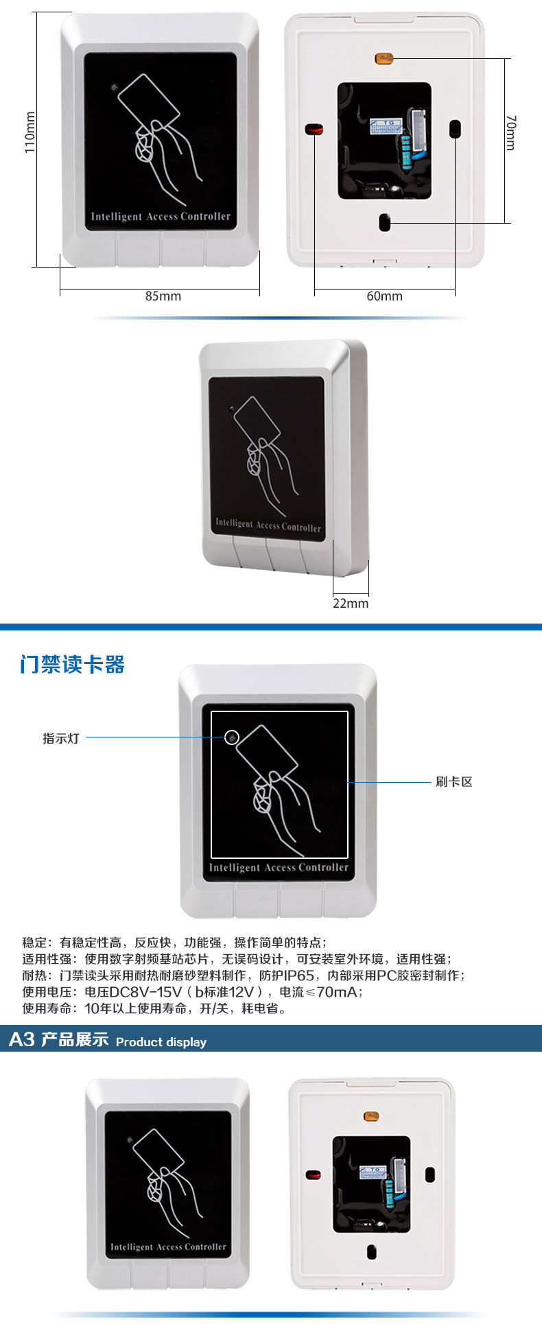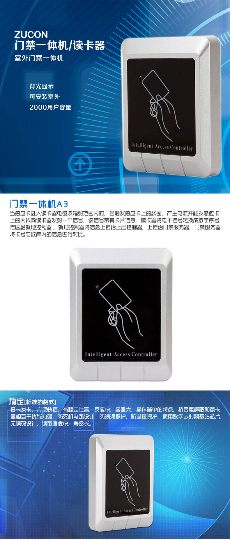 ZUCON祖程A3門禁一體機(jī)室外防水門禁一體機(jī)讀卡器帶母卡發(fā)卡